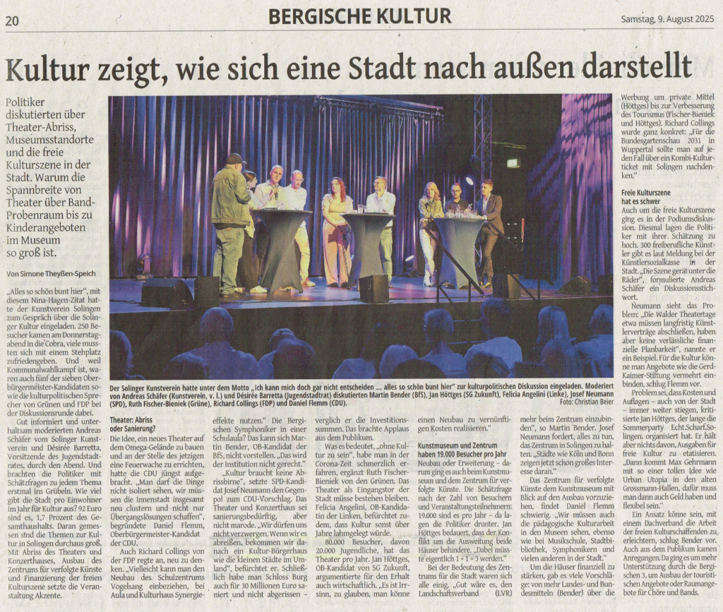 07.08. 2025 – Cobra – Kulturpolitische Diskussion – Quelle: Solinger Tageblatt